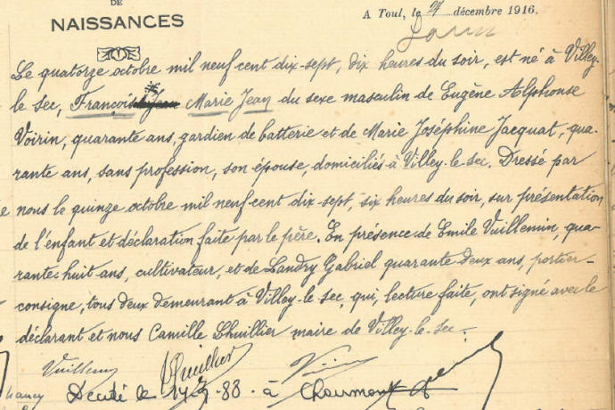 14 octobre 1917 à VILLEY-le-SEC (Meurthe et Moselle) - Décédé le 14