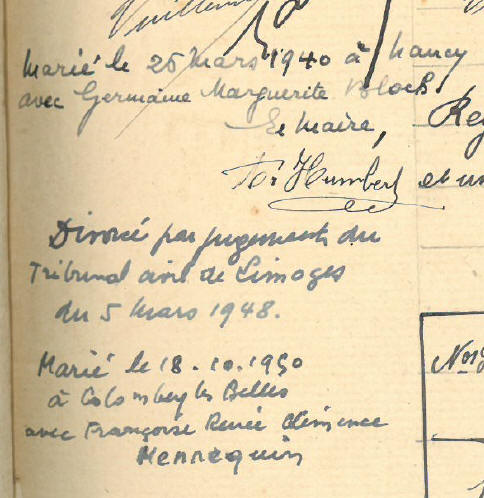 25 mars 1940 à NANCY avec Germaine Marguerite BLOCH, un enfant
