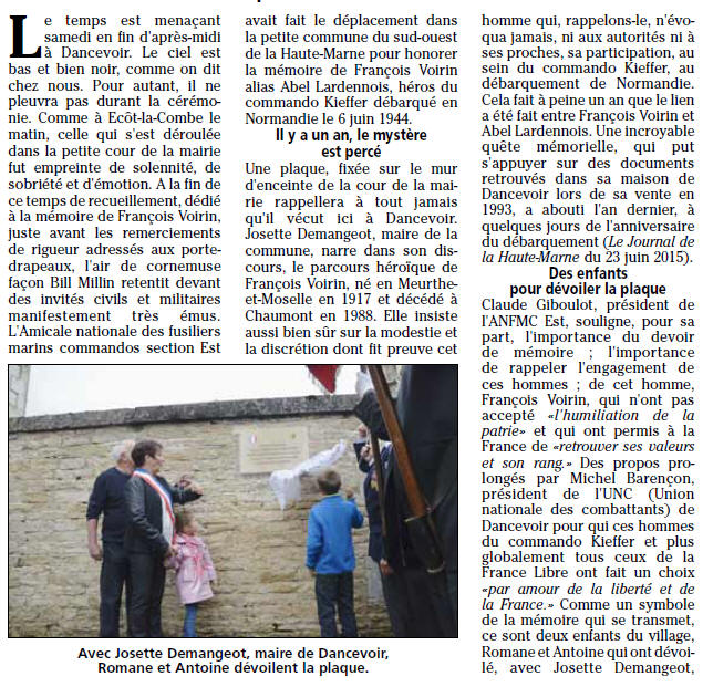 d'une cérémonie à la mairie de Dancevoir (Haute marne)