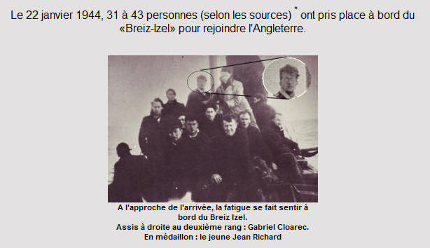"Breiz-Izel" en janvier 1944 de Douarnenez à destination de l'Angleterre