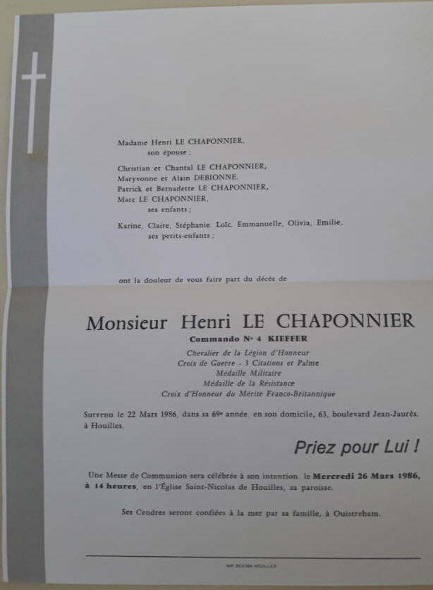 Fils de Joseph Marie LE CHAPONNIER, chauffeur, et de Marie Olive LE