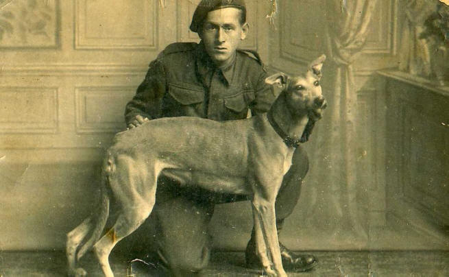 En 1943, avec la chienne "Diane", mascotte du commando Kieffer