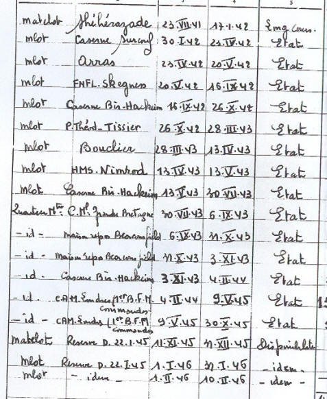 novembre 1943, Bir Hackeim jusqu'au 5 février 1944, puis au commando