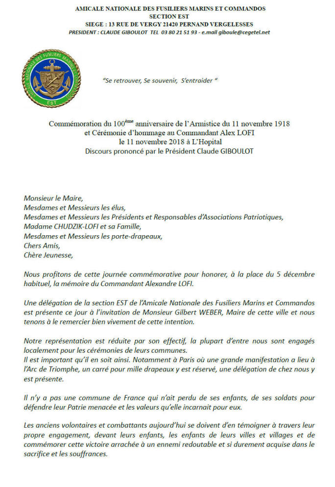 Refusant l'Armistice, le second-maître fusilier Lofi