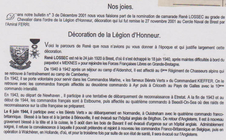 des commandos ; se porte volontaire avec Gouriou, Kermarec, Roppers,