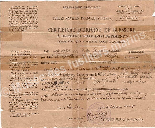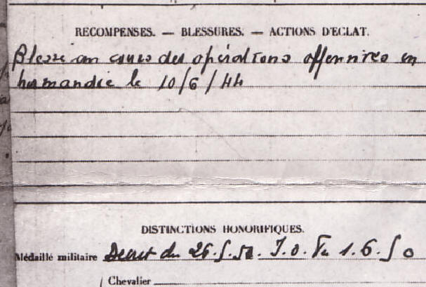 Le 6 Juin 1944, prend part au débarquement sur la plage de