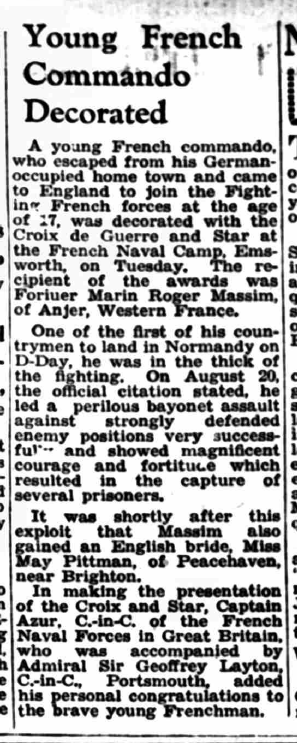 Le 6 Juin 1944, prend part au débarquement sur la plage de