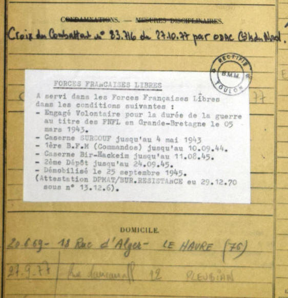 Originaire de Pleubian, engagé à 17 ans dans les Forces