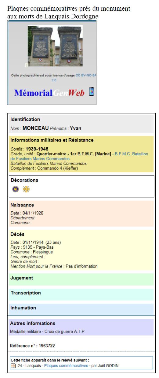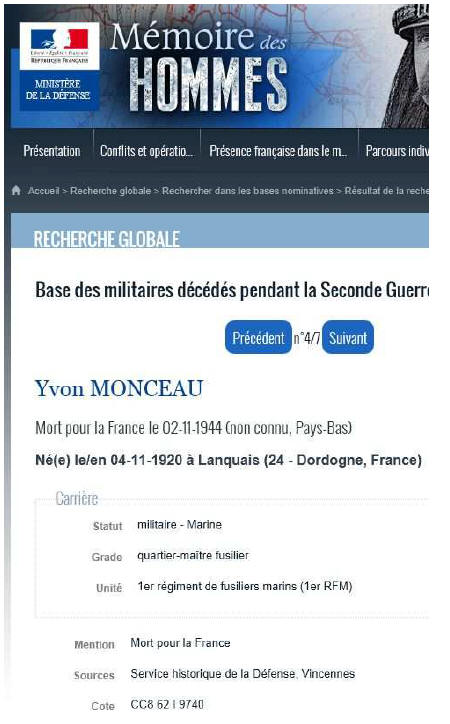 Né le 4 novembre 1920 à LANQUAIS (Dordogne) - Décédé le 1er novembre 1944
