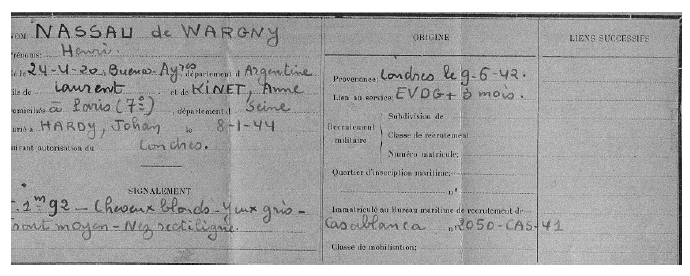 Nom de guerre / NASSAU de WARGNY ou WARIGNY