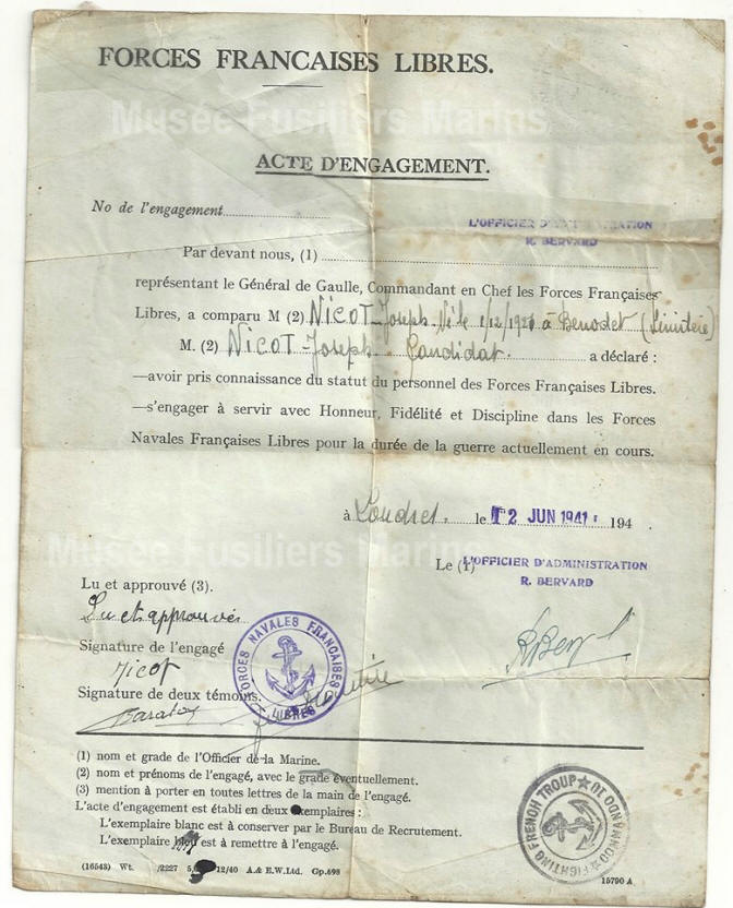 S'engage dans la France Libre en Juin 1941.