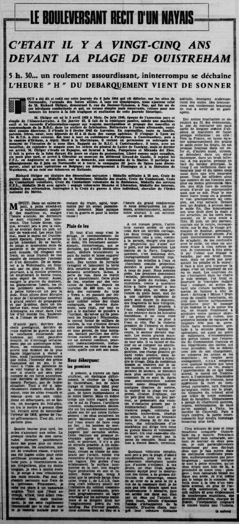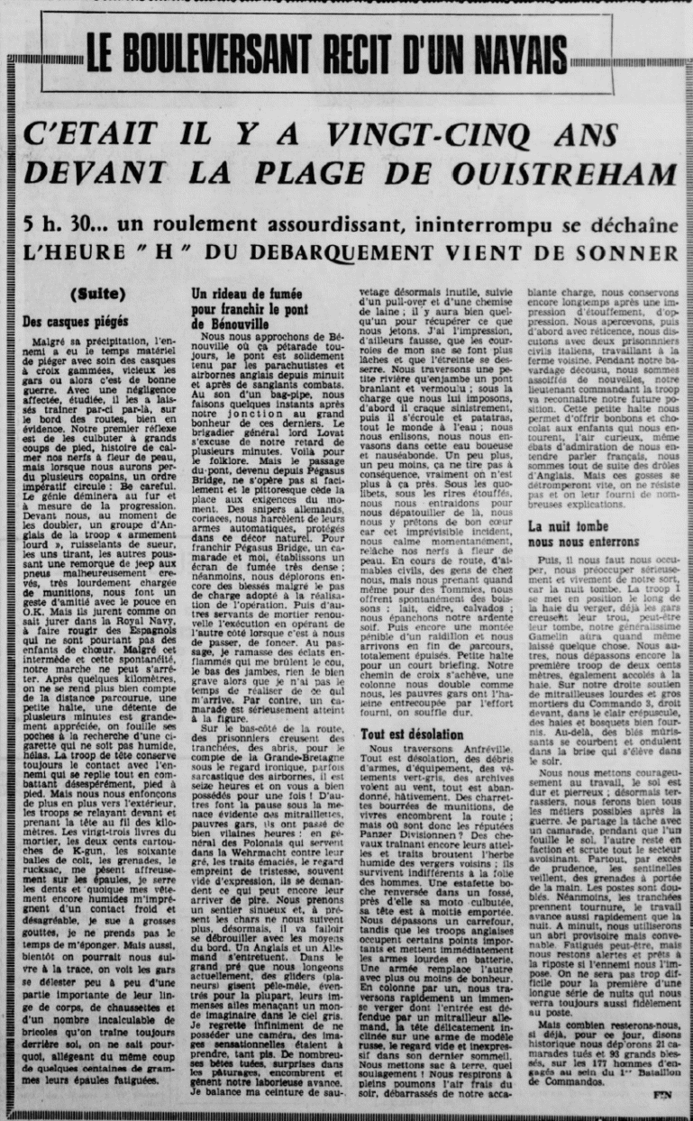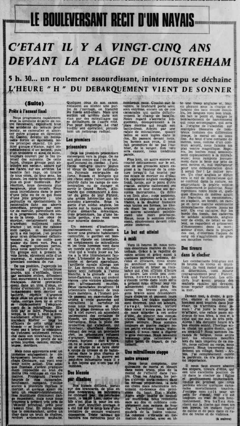 Le 6 Juin 1944, prend part au débarquement sur la plage de