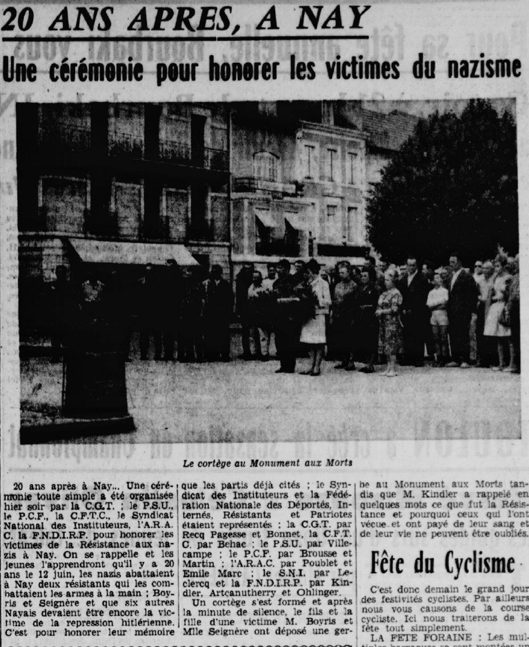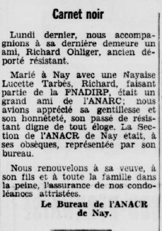 Décédé le 13 juillet 1973 à NAY (Pyrénées-Atlantiques)