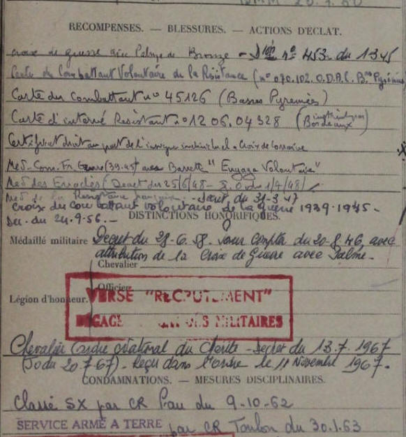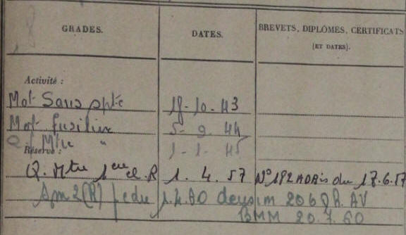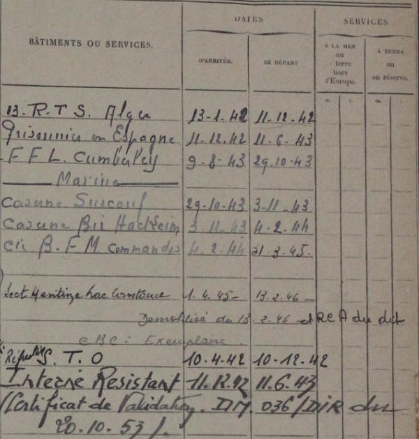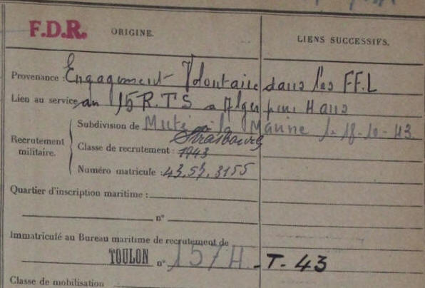 S’engage dans la France Libre en Novembre 1943.