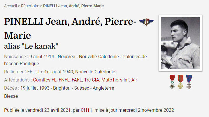 Né le 9 août 1914 à NOUMEA (Nouvelle Calédonie) -