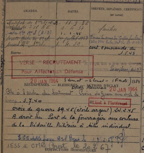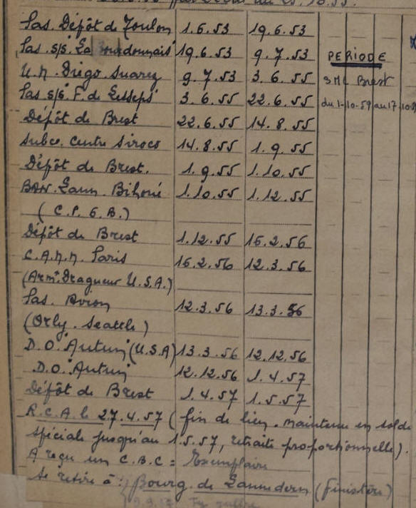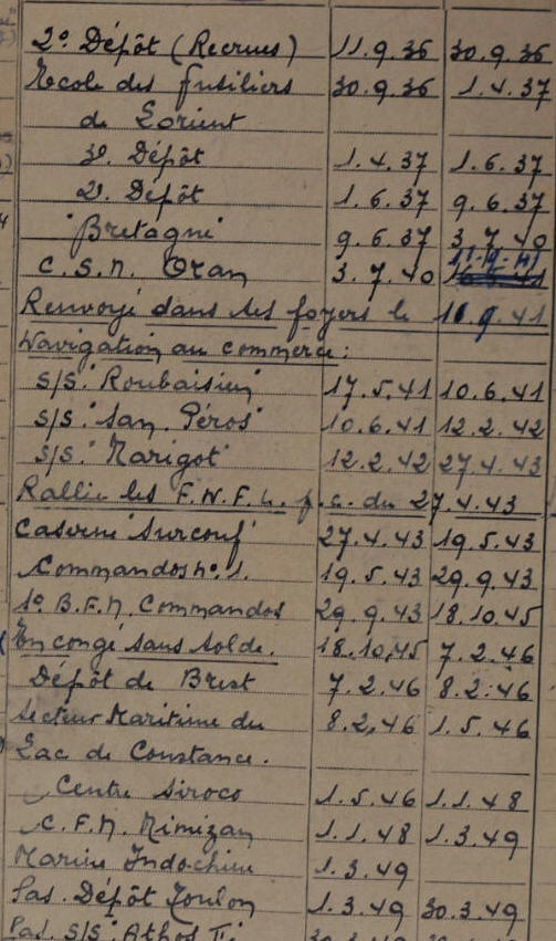Mers-El-Kebir en 1940, retour en métropole en 1951, quitte la Marine