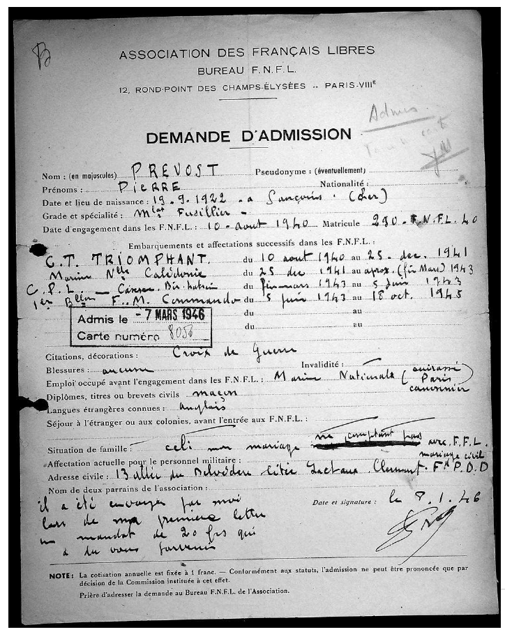 Pierre Prevost est matelot de la marine nationale en 1941, sur un aviso