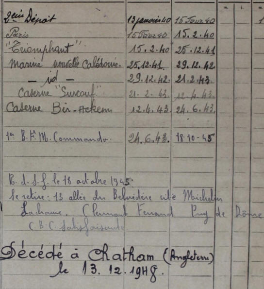 sur fiche matricule décédé le 13 septembre 1948 à Chatham