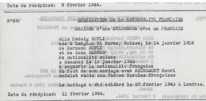 27 février 1943 avec Hedwig RUFLI, née le 14 janvier 1918 à LENGHAU