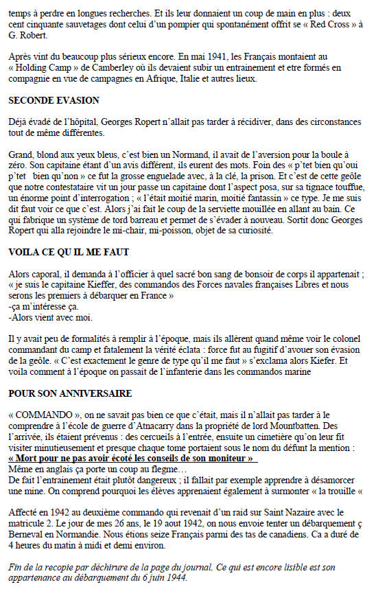 Compagnie des Fusiliers Marins Commandos, le Q/M fusilier ROPERT Georges
