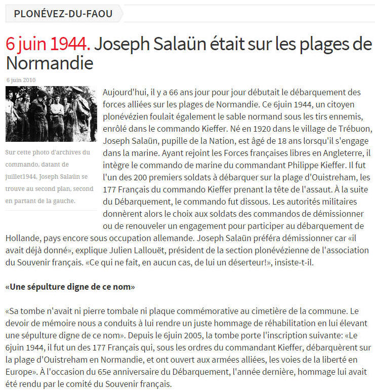 Né le 23 décembre 1920 à PLONEVEZ du FAOU (Finistère)