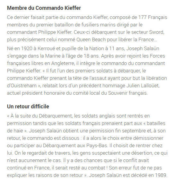 Le 6 Juin 1944, prend part au débarquement sur la plage de