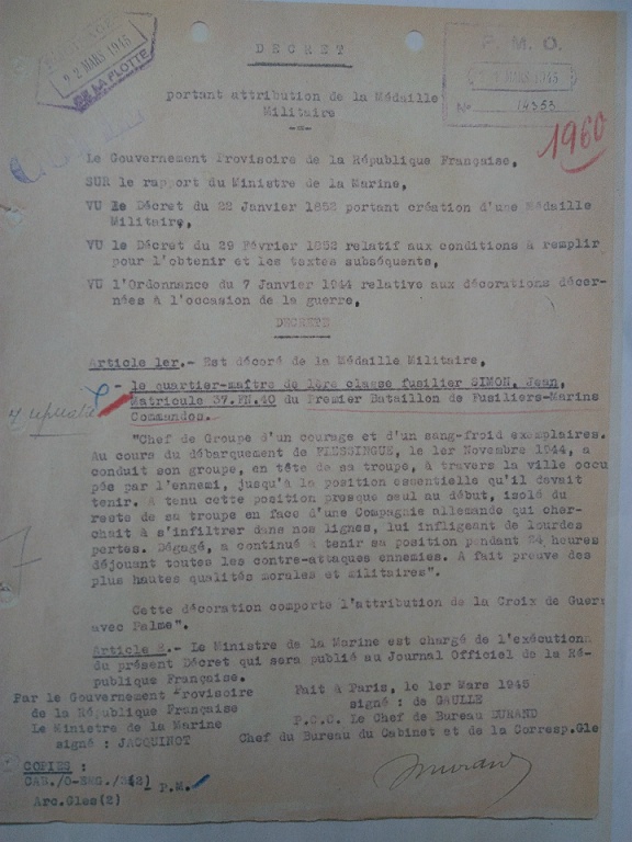 Le 6 Juin 1944, prend part au débarquement sur la plage de