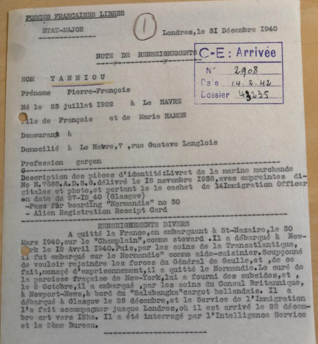 S'engage dans la France Libre en Juillet 1940.