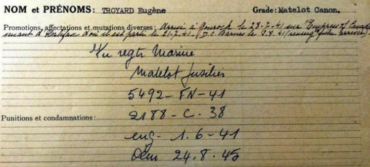 Affecté sur le "Cdt Etienne d’Orves" jusqu'au 27 juin 1945