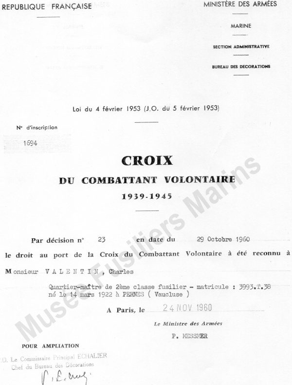 S’engage dans la France Libre le 7 novembre 1940 (date de sa désertion)