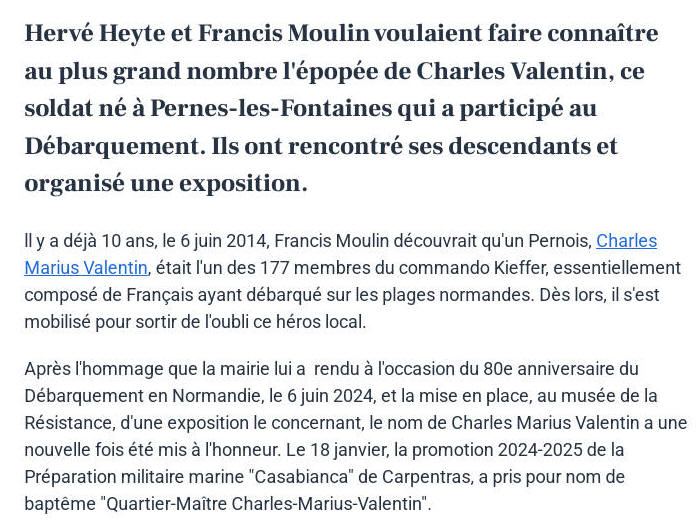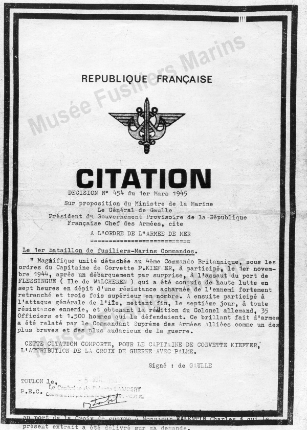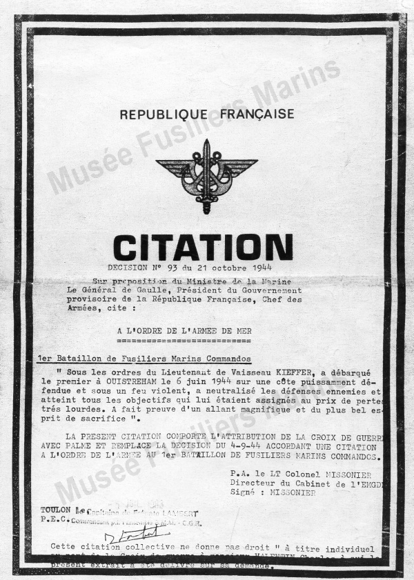 Le 6 Juin 1944, prend part au débarquement sur la plage de
