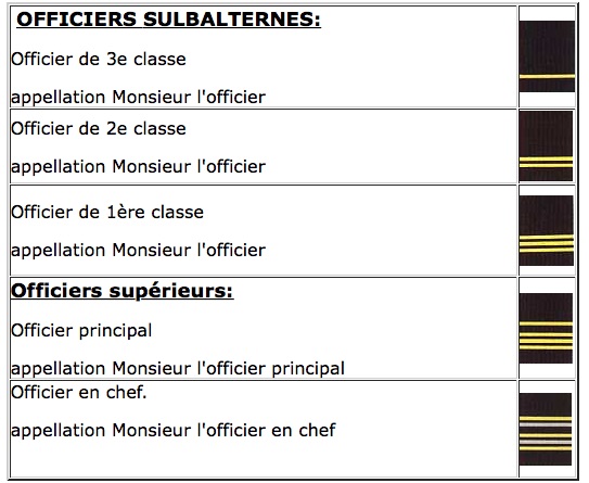 La hiérarchie des officiers des équipages de la flotte, dont le
