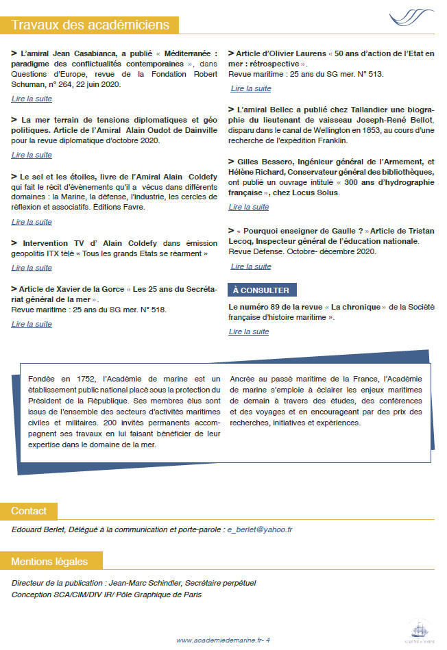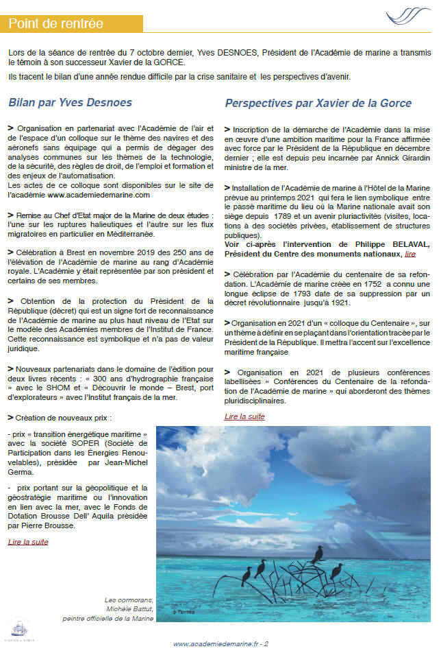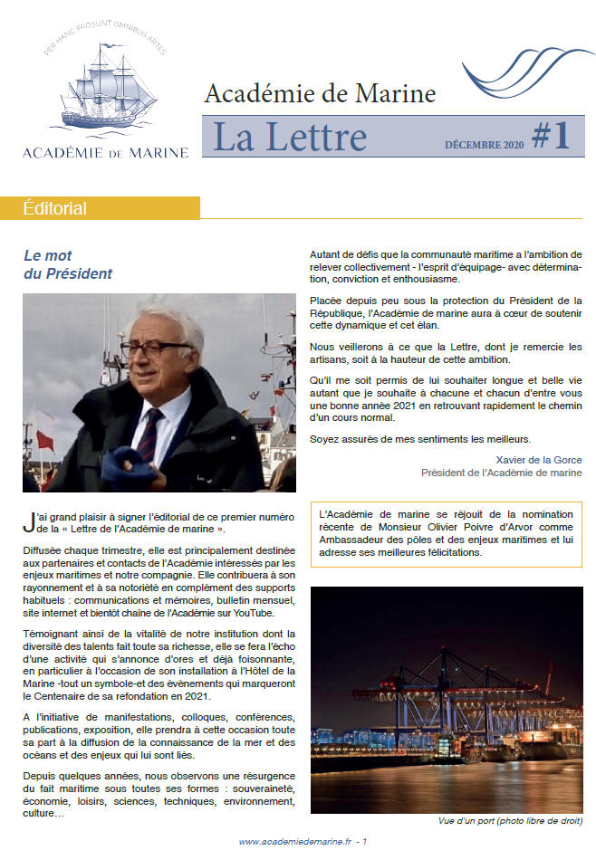 Décembre 2020 / 1ère lettre de l'Académie de Marine