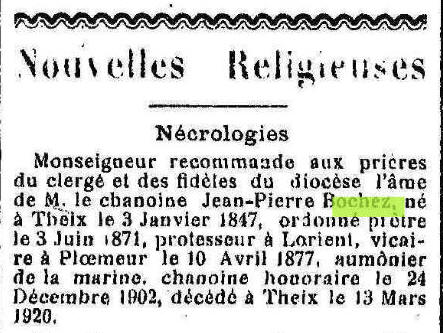 THEIX (Morbihan) - Décédé le 13 mars 1920 à THEIX (Morbihan)