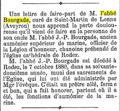 à POMAYROLS (Aveyron) - Décédé le 7 octobre 1880 à RODEZ (Aveyron).