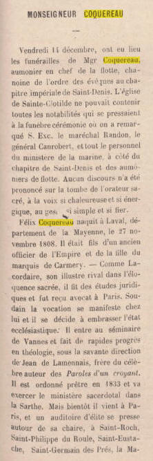 continua à l’abbé Coquereau les faveurs que la monarchie de Juillet