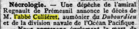 Marine le 30 décembre 1874 en qualité d'Aumônier de 2ème classe.