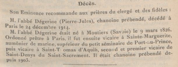 Extrait La semaine religieuse / Janvier 1915