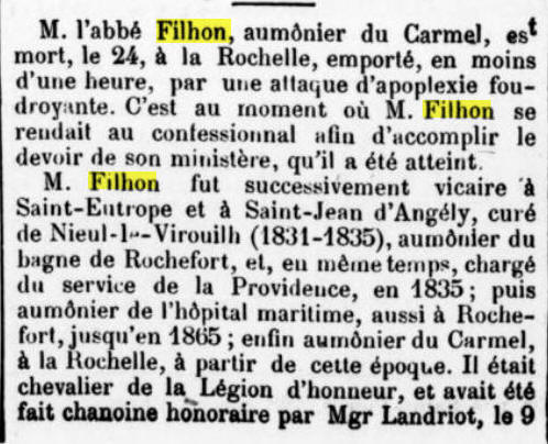 d'Honneur le 11 août 1855, aumônier de l'Hôpital maritime de