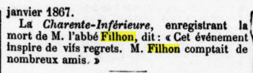 BARBEZIEUX-SAINT-HILAIRE (Charente- - Décédé le 25 avril 1873 à LA