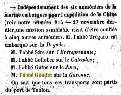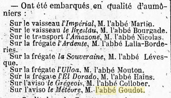 service à la mer (port TOULON), Aumônier sur la "GARONNE".