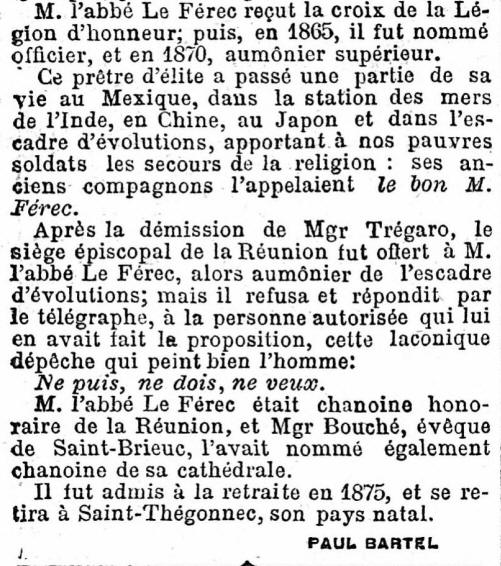 sur la frégate cuirassée "OCÉAN", Aumônier d'escadre auprès du