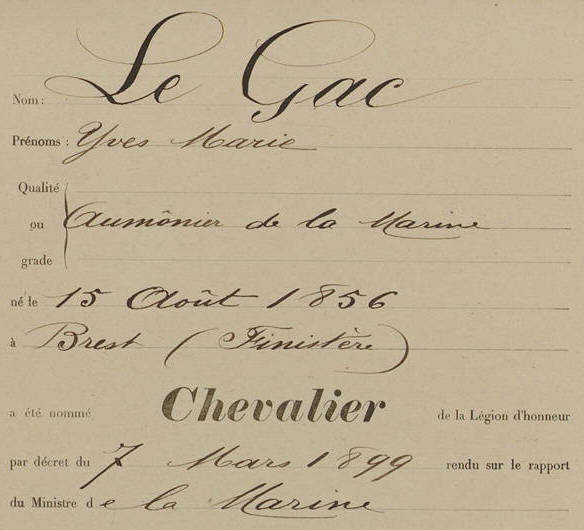 Décret du 7 mars 1899, à Cherbourg nommé chevalier de la Légion