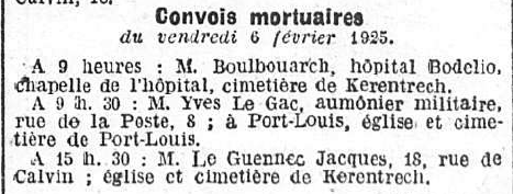 1er janvier 1885 – aumônier à l'hôpital maritime de Brest