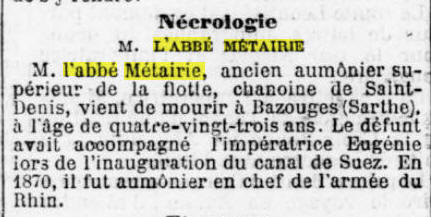 AVERTON (Mayenne) - Décédé le 11 septembre 1897 à BAZOUGES-sur-le-LOIR
