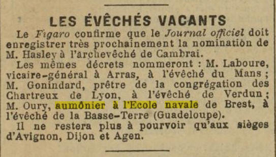 l'Ecole navale sur le "Borda". Mgr Oury fut jugé par l'autorité