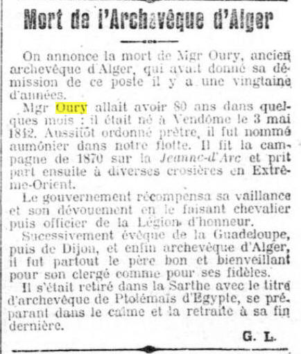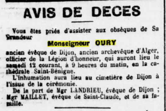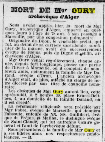 en devint archevêque. Mgr Oury décéda à Marseille dans la nuit du 5