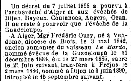 avait su "modérer les exaltés". Des le 4 juillet 1890, Mgr Oury