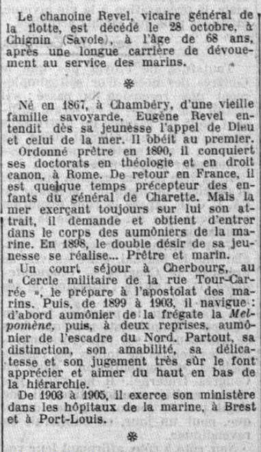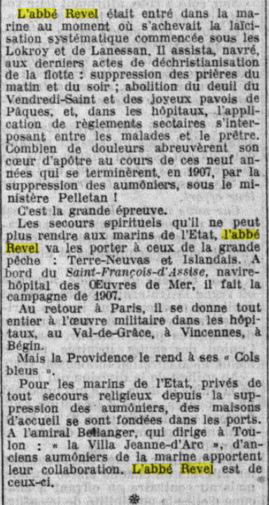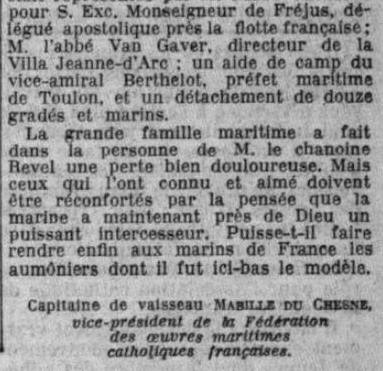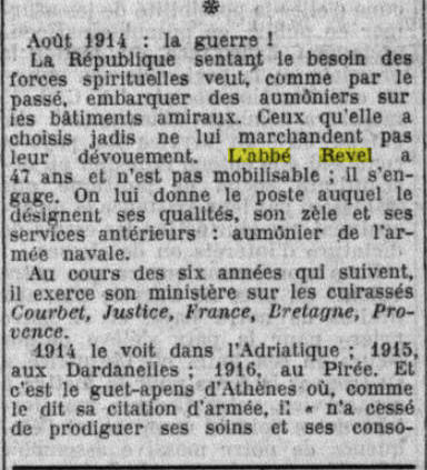 Aumônier d'escadre auprès du Vice-Amiral Camille GIGON, Commandant