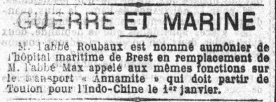 service à terre, Aumônier de l'Hôpital maritime de SAINT-MANDRIER,